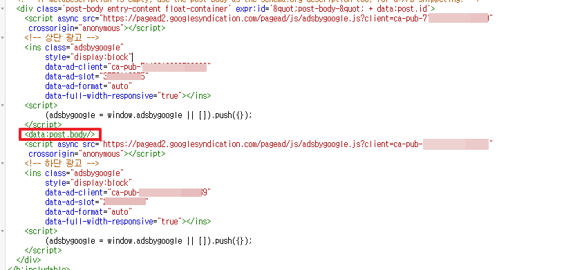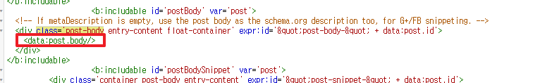 여기서 우리가 주목해야 될 부분은 <data:post.body/> 태그입니다.