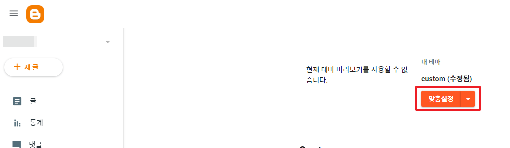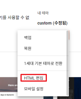 '맞춤 설정' 버튼을 클릭 한 뒤 'HTML 편집' 모드로 들어가주세요.