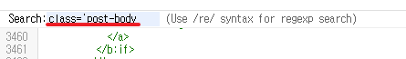 "Ctrl+F" 을 눌러 "class='post-body "를 입력해주세요.