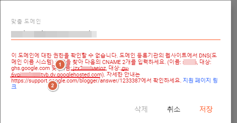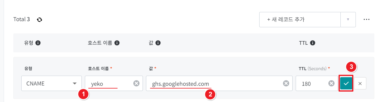 값에는 "ghs.googlehosted.com"을 입력해 주세요.