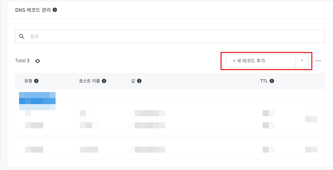 "네임서버/DNS 탭" => "DNS 레코드 관리"로 들어갑니다.