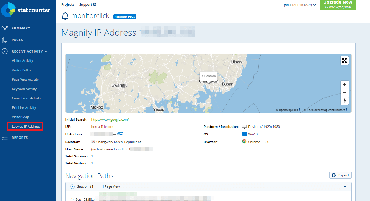 RECENT ACTIVITY > Visitor Activity에 들어갑니다.