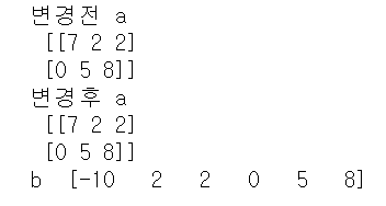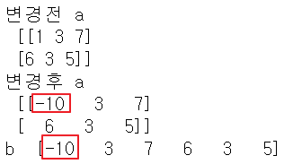 평탄화 작업(?) 을 마친 b의 1번째 값을 -10으로 변경 해보겠습니다