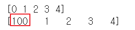 위와 같이 5개의 원소를 가진 배열을 a 변수에 넣고. 이 값을 복사(copy)에서 다시 b에 넣은 후
