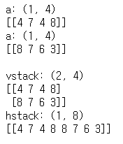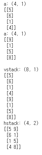print(f"hstack: {hstack.shape}\n{hstack}\n")