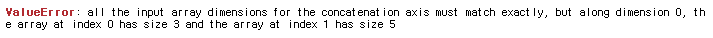 과감하게 합쳐보시면.. ValueError(all the input arrays must have same number of dimensions...)를 만나게 됩니다.
