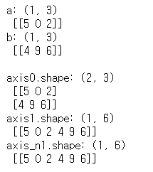 이 api 특이한점은 2차원같이 행 과 열밖에 없는 shape의 배열들끼리 합칠때도