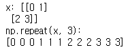 rep = np.repeat(x,repeats=3, axis=0) # axis = 0 , row 방향으로 반복