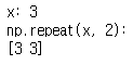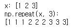 rep = np.repeat(x, 3) # x를 반복시킬건데 세번을 반복시킨다는 것