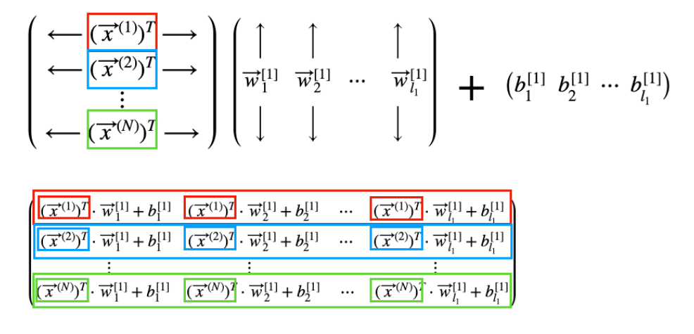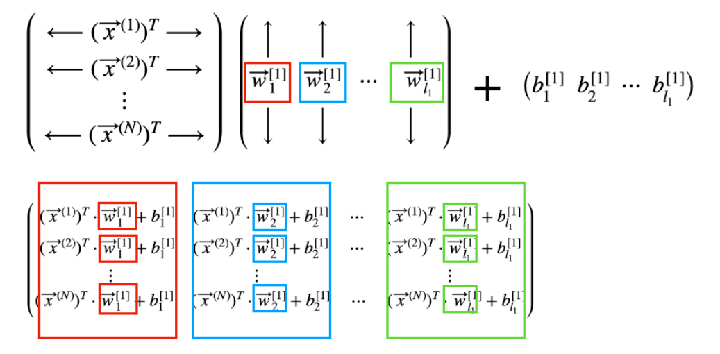 이보다 각각의 벡터 연산을 한번에 묶어 행렬로 계산한다면, 더욱 빠른 연산이 가능하죠.