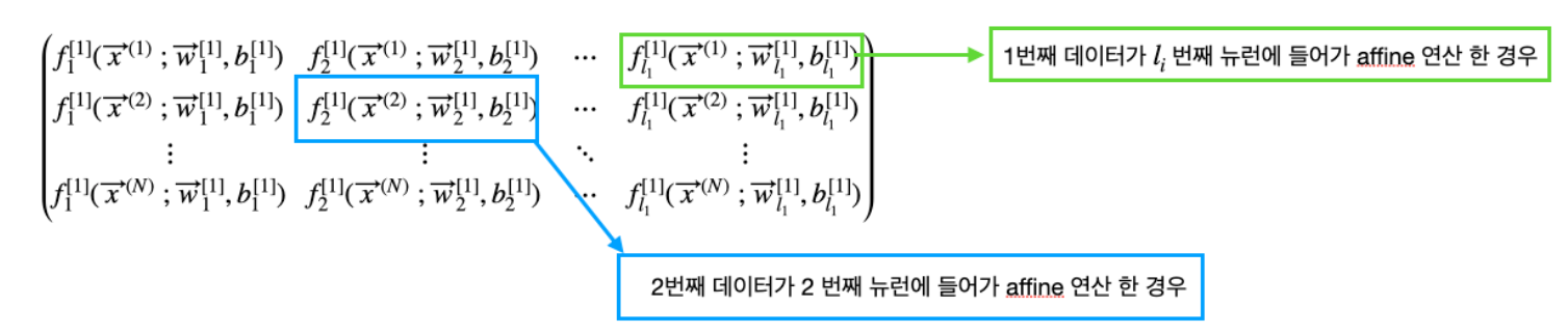 더 나아가서 각 뉴런에 affine 연산을 하는 함수를 $f$라고 할때 아래와 같은 표현과 해석이 가능합니다.