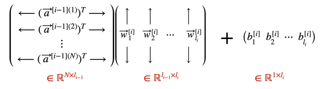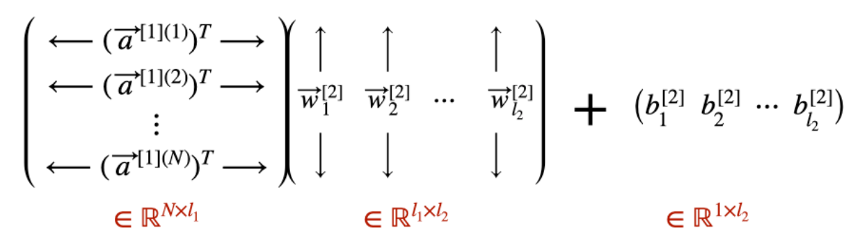 shape의 경우 첫번째 layer에서 $l_1$개의 뉴런을 통과한 a데이터의 shape은 (n,$l_1$)이고, 두번째 layer의 $W^T$는 ($l_1,l_2$)입니다.