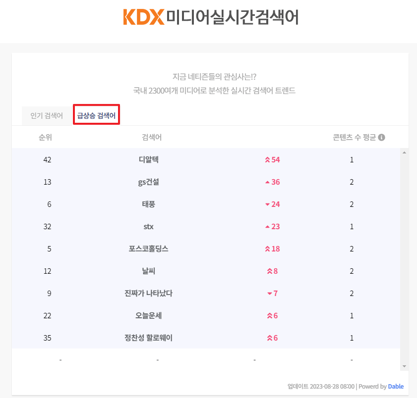 해당 기능은 데이블 검색어 트렌드를 그대로 보여주고 있습니다.