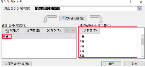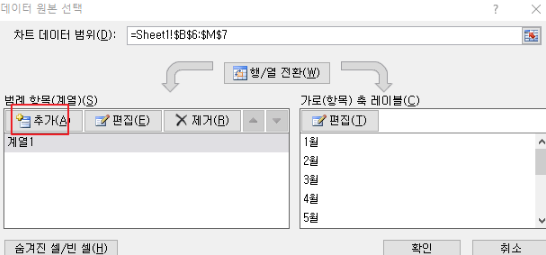 이어서 계열 값은 적용할 데이터의 범위를 넣어주는 부분인데요.
