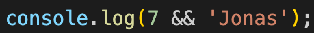 다음 친구는 'Jonas'입니다. 이번에도 truthy 합니다. 뒤에 falsy한 값이 있나 찾고 싶어도 이 값이 마지막이기 때문에 'Jonas'를 리턴합니다.