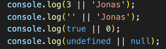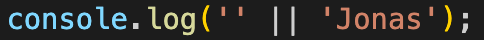 두번째 'Jonas'를 만납니다. truthy한 값이죠? , or 연산자는 이 값을 return 합니다.