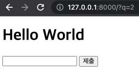 url이 위와 같이 변경이 됩니다. 물음표가 추가되고 name과 우리가 입력한 2가 연결되어서 url을 형성한 것을 알 수 있습니다.