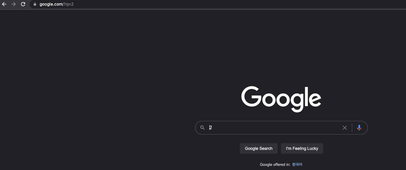 신기하게도 구글 페이지로 화면이 바뀌고 2를 입력한 상태화면이 뜨게됩니다.