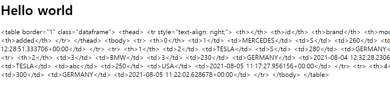 그 다음 추가할것은 바로 .to_html() 입니다.