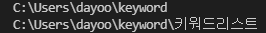 저는 아래와 같이 상대경로를 이용하여 키워드리스트 라는 폴더명을 가진 디렉토리로 이동하였습니다.