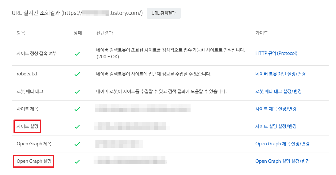 검색창에 'site:블로그주소'를 입력했을 때 아래와 같이 뜬다면 정상적으로 등록된 것입니다.