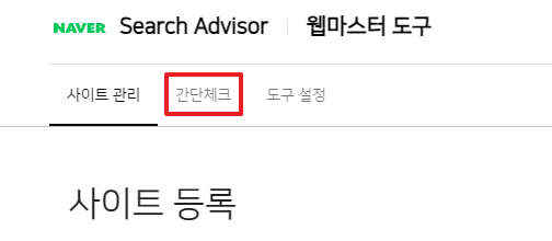 웹마스터 도구 상단에 "간단 체크"를 클릭해주세요.