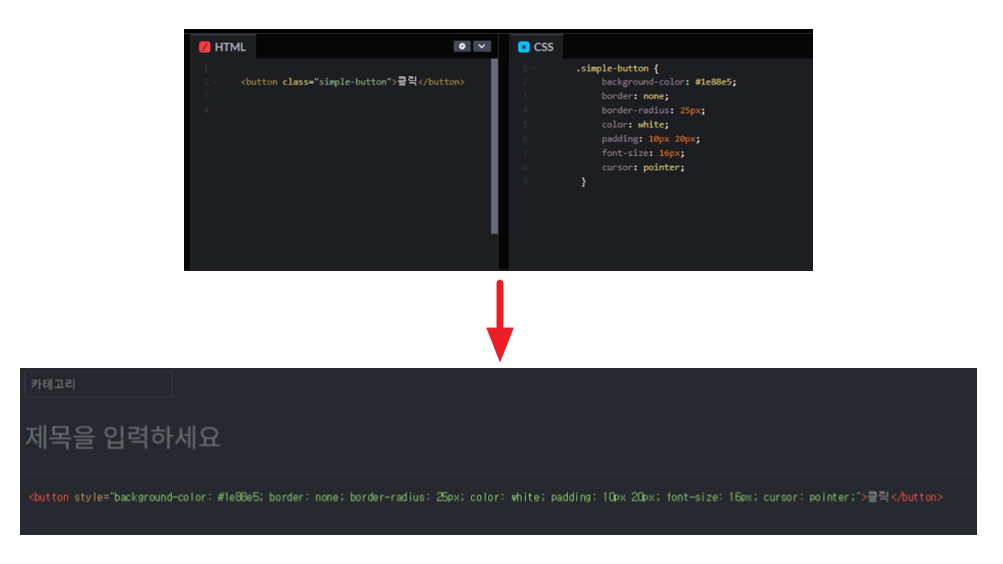 다소 복잡한 디자인을 적용하고 싶다면 아래와 같이 <style></style> 태그를 본문 안에 집어넣어줄 수도 있습니다.