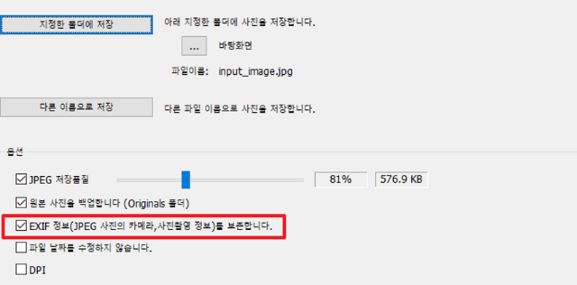 이럴땐 포토스케이프를 이용하면 EXIF 메타데이터 정보를 유지한 채 크기를 줄일 수 있습니다.