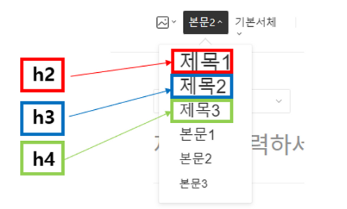 아래 그림과 같이 h2는 제목1, h3은 제목2, h4는 제목3을 의미합니다.