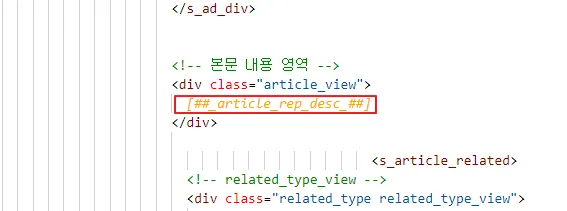 복사한 광고를 _article_rep_desc_ 위에 넣어줍니다.
