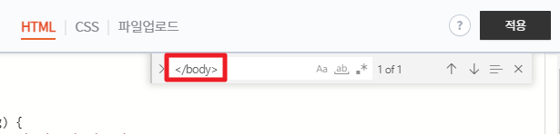 "스킨편집 => html 편집" 로 들어간 뒤 "Ctrl + F" 를 눌러 "</body>" 태그를 검색해 주세요.