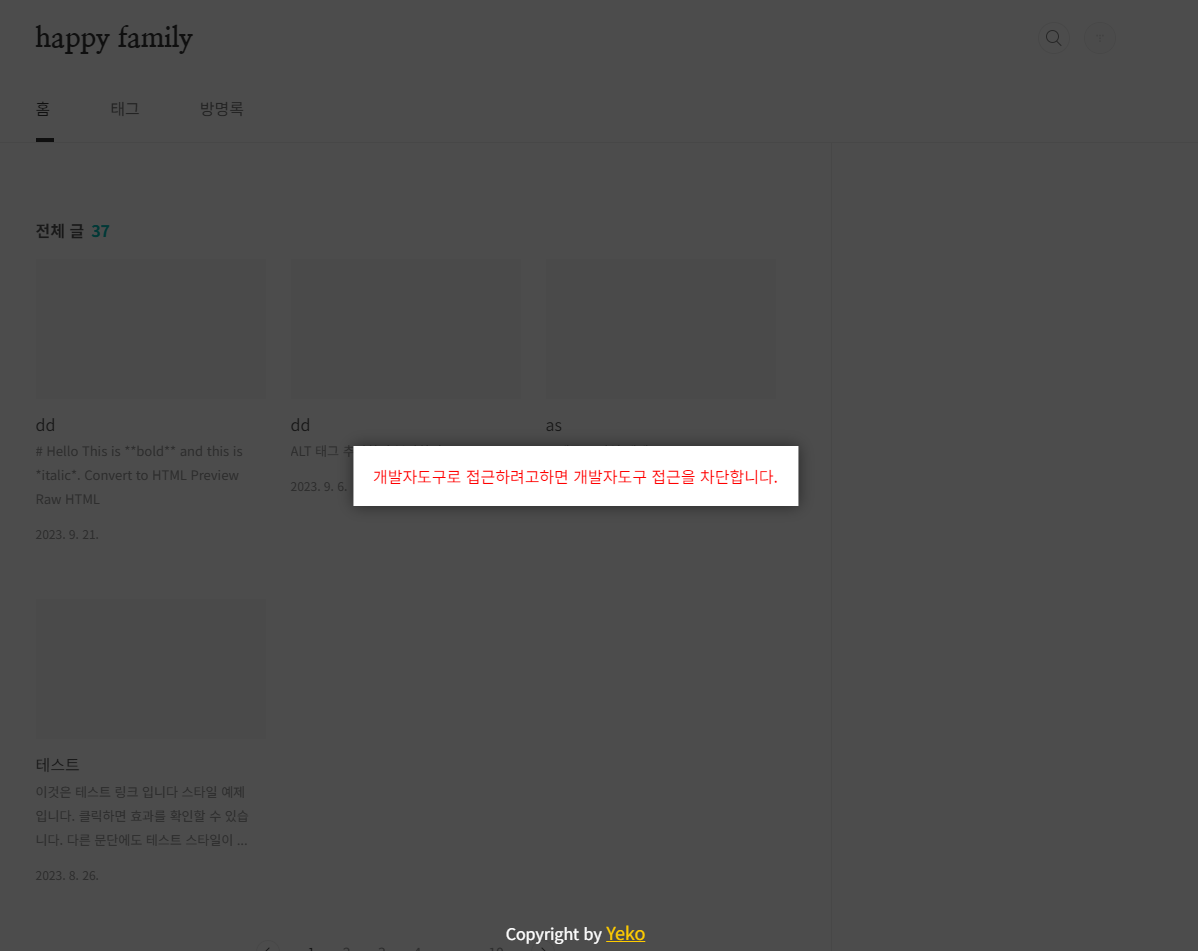이제 개발자 도구로 블로그 접속 시 아래와 같은 메시지가 뜨게 됩니다.