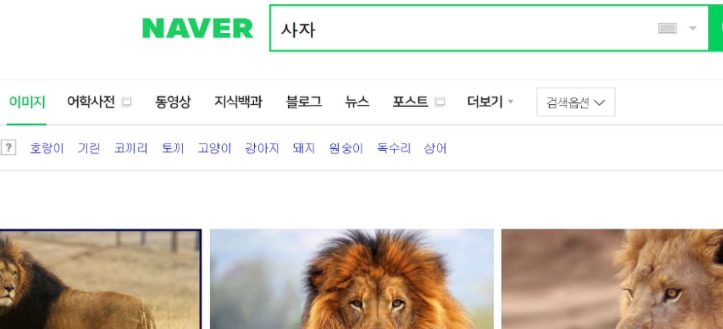 3. 네이버에 원하는 이미지를 검색하자 (ex.사자)