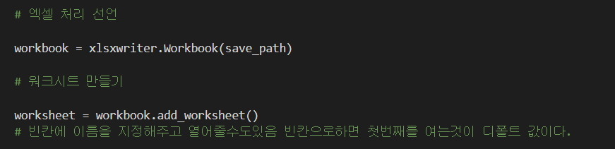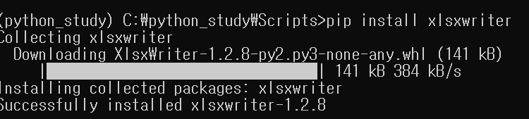 1. 아래와 같이 xlsxwriter을 터미널창에서 설치해주자.(pip install xlswriter)