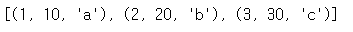 보시는것처럼 같은 인덱스에 위치한 값들을 튜플로 묶는것을 알 수있습니다.