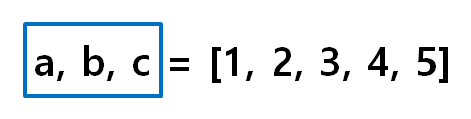 하지만 위와 같은 코드는 어떨까요? 변수는 3개인데 원소 값이 5개이네요. 하지만 우리는 3개 변수 안에 욱여(?) 넣을 수있는데요. 이때 쓸수 있는 것이 * 입니다.
