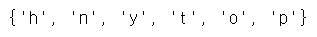 두번째는 Set 형태로 값을 묶다보니 h가 두개인데 1개로 축소되었고, 순서가 없기때문에 무작위로 섞여 있습니다.