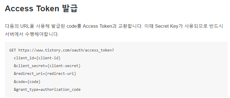 아래 사진은 공식문서에 적혀 있는 Access Token 발급 방법이다.