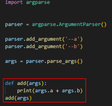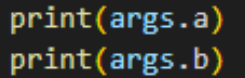 우선 우리가 정의한 매개변수명(여기서는 --a, --b)을 이용해 Command Line에 명령어를 입력해보겠습니다.