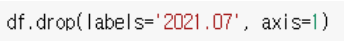 즉 "컬럼 중에서 2021.07을 찾겠다"라고 판다스에게 말해주는 것인데요.