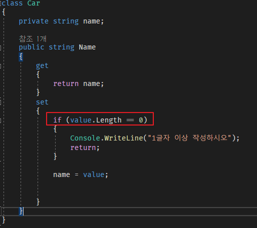 새로운 값을 지정할때는 value라는 키워드를 사용하는데, 마치 매개변수처럼 사용됩니다.