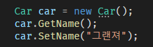 위 클래스는 public 으로 구성된 GetName, SetName 메소드을 가지고 있습니다.