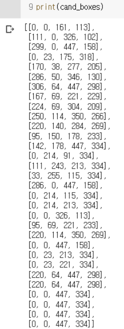 일단 cand_boxes라는 변수에 위에서 예측한 바운딩박스의 좌표값들을 저장해놓았습니다.