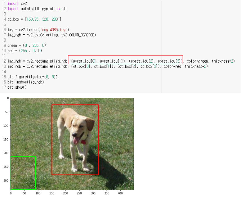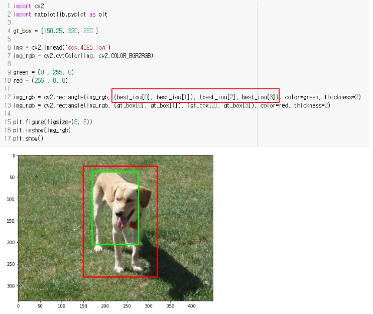 그리고 정답 바운딩박스 좌표 하나를 gt_box라는 변수에 담았습니다.