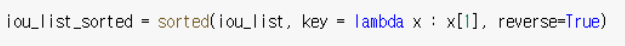 리스트를 iou값 기준으로 내림차순 정렬합니다.