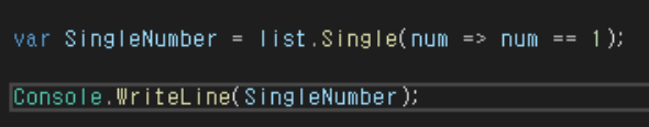 Single, First 둘다 하나의 값을 추출하는데 사용되는 것은 맞으나, 추출할곳(여기선 list)에 조건에 맞는 값이 하나만 있다라는 확신이 있을때만 Single을 사용해야 합니다.