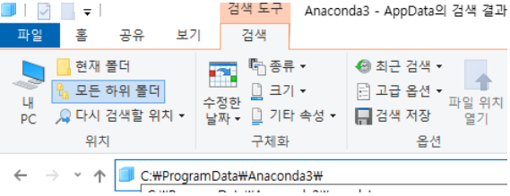 여기서 우리가 관심 있는 부분은 Anaconda가 적혀 있는 경로입니다.