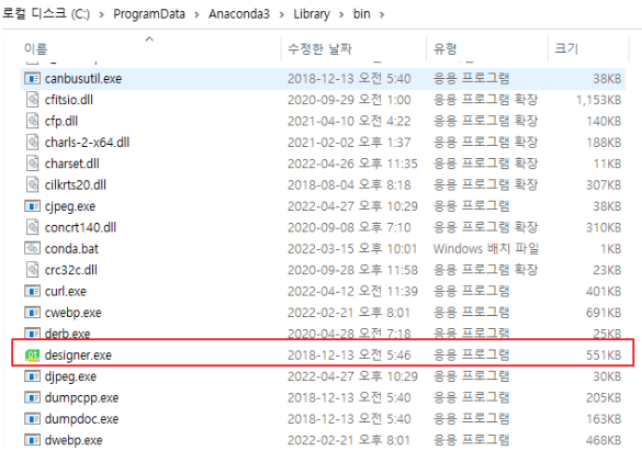 또한 아나콘다 환경에서 qtdesigner를 명령어로 바로 띄울 수 있는 환경변수가 설정되어 있습니다.