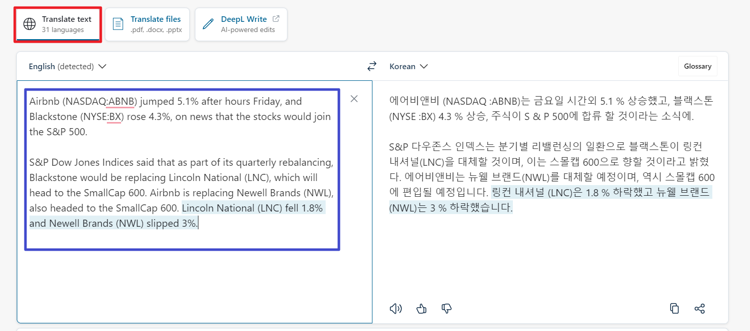 DeepL은 이 부분을 굳이 번역하지 않아 문장을 더 자연스럽게 만들었다.