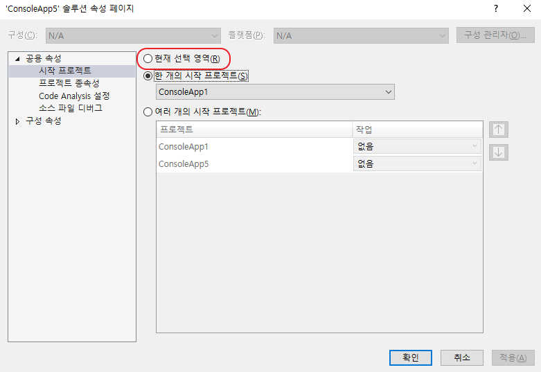 이렇게 설정을 하면 매번 시작프로젝트를 변경할 필요가 없이, 작업중인 프로젝트가 실행이 되게 됩니다.
